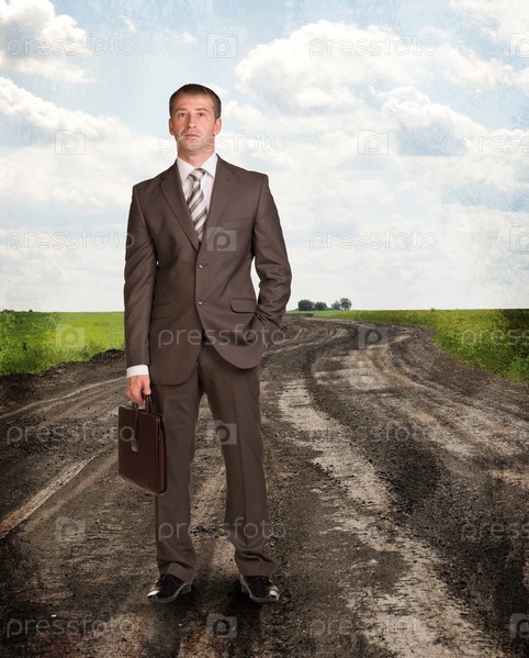 Бизнесмен с портфелем на дороге