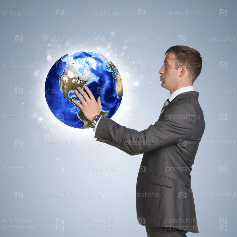 Мужчина держит глобус
