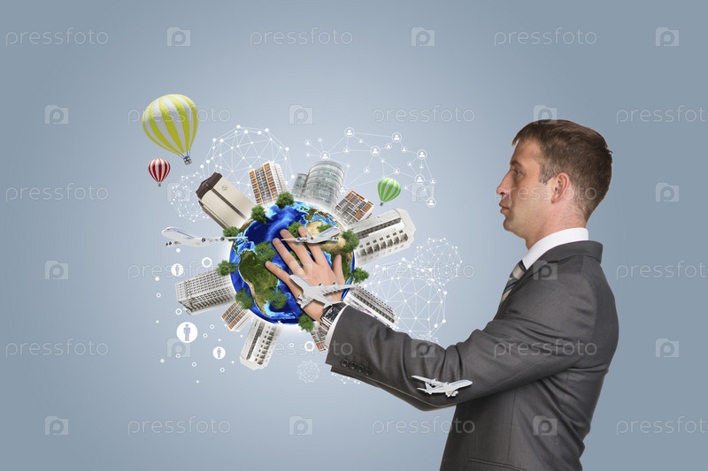 Бизнесмен держит земной шар