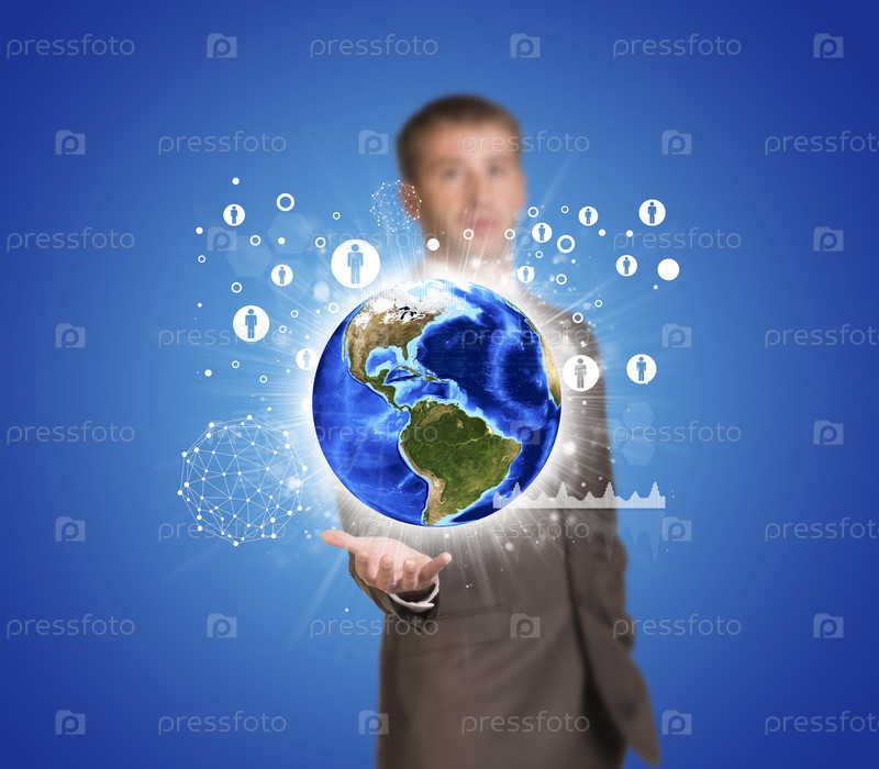 Бизнесмен держит земной шар