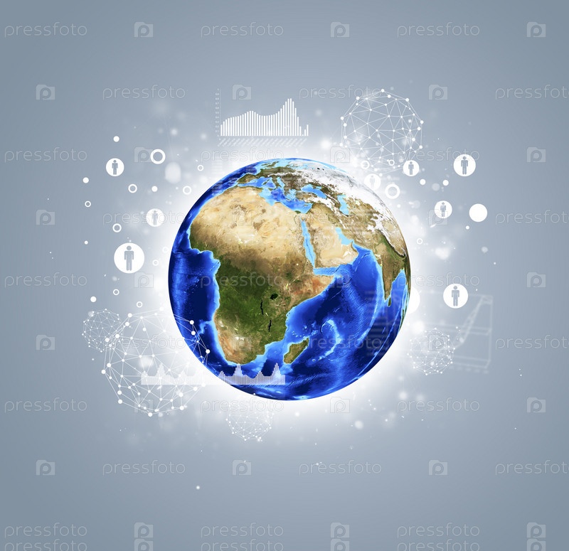 Земля с графиками и сетью