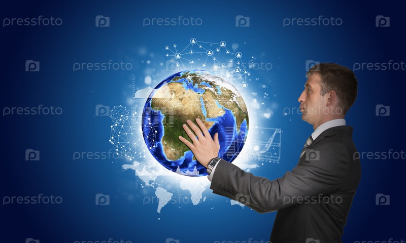 Бизнесмен держит земной шар