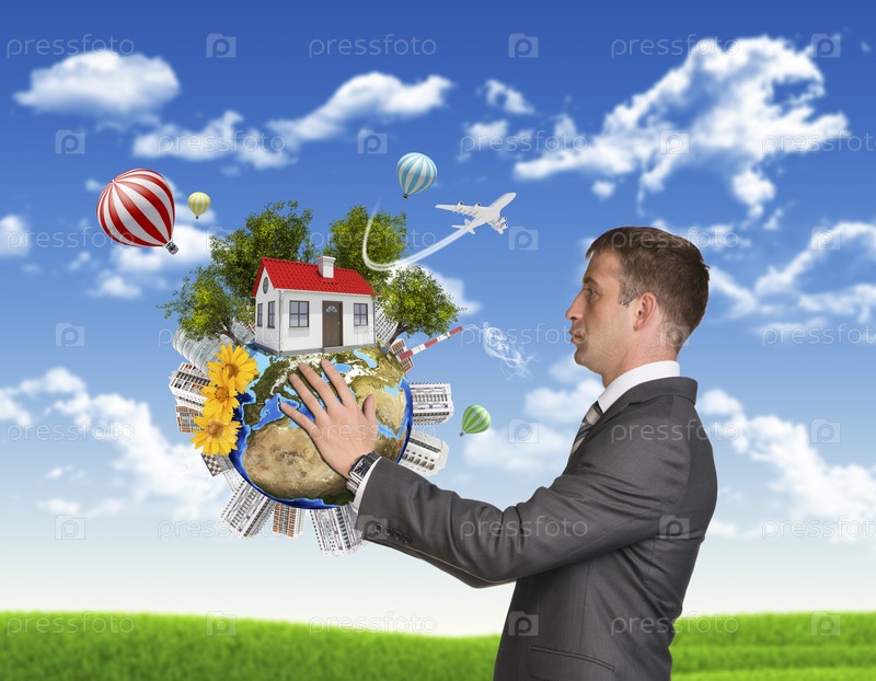 Мужчина держит глобус