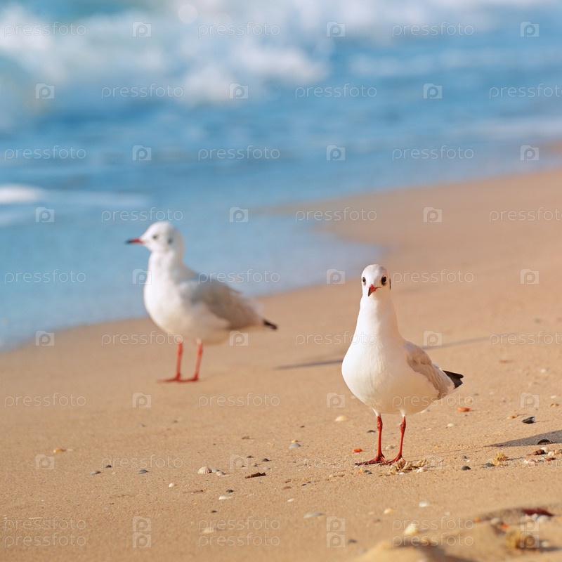 Чайки, море и песчаный пляж