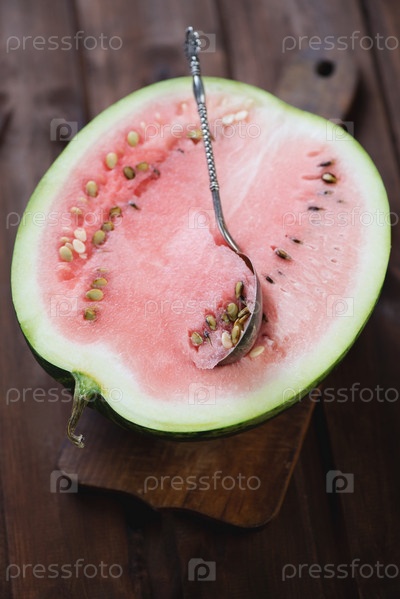 Половинка арбуза на разделочной доске