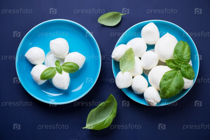 Моцарелла и листья зеленого базилика