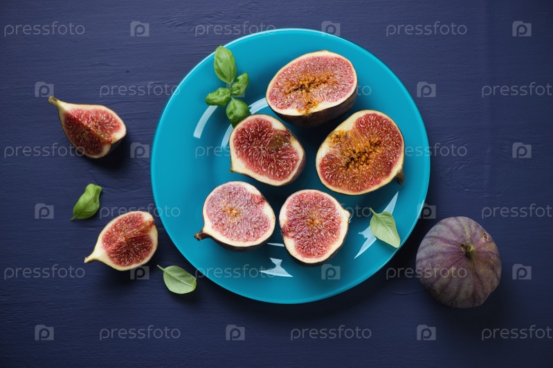 Нарезанный инжир на синем фоне