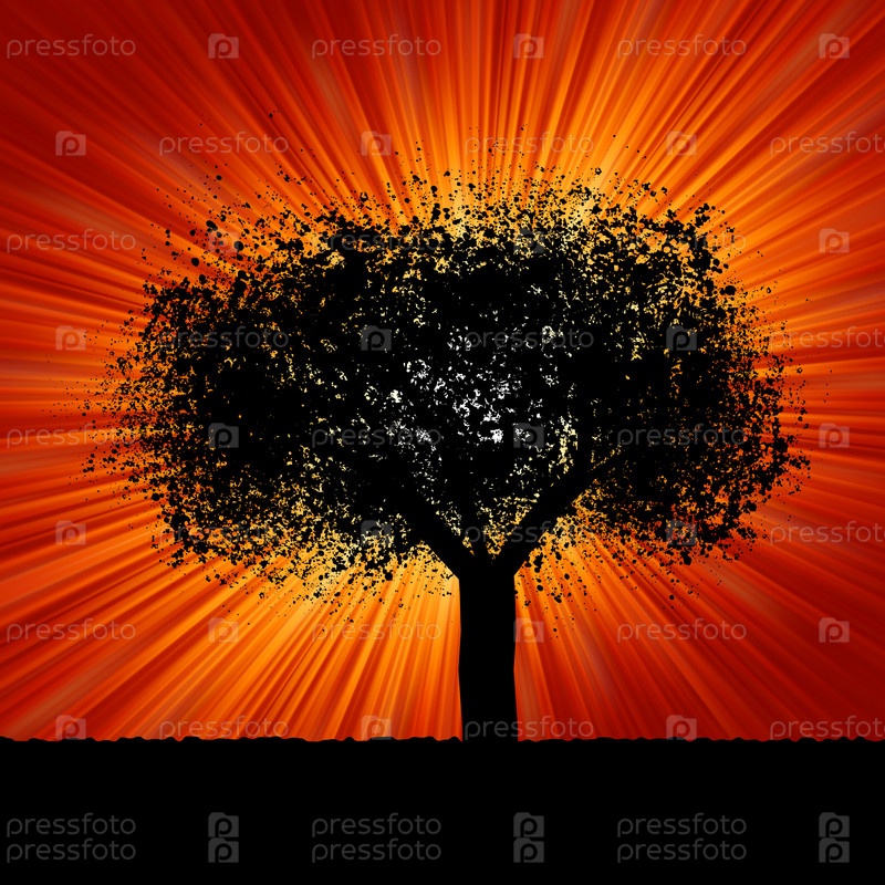 Черное дерево на фоне красной вспышки света