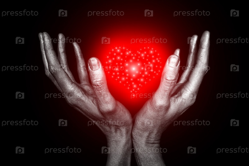 Мужские руки держат символ сердца