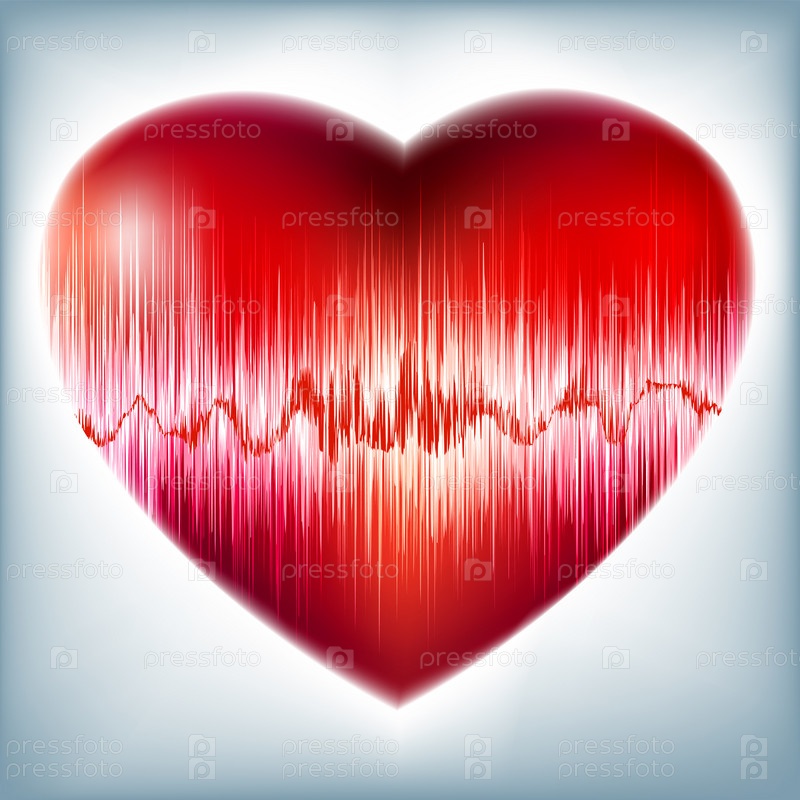 Красное сердце и электрокардиограмма на светлом фоне