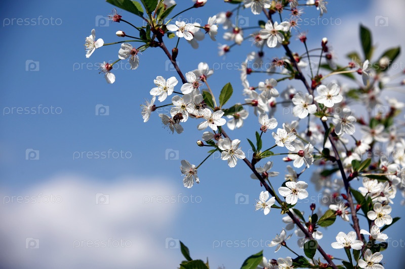 Цветущие ветви на фоне синего неба