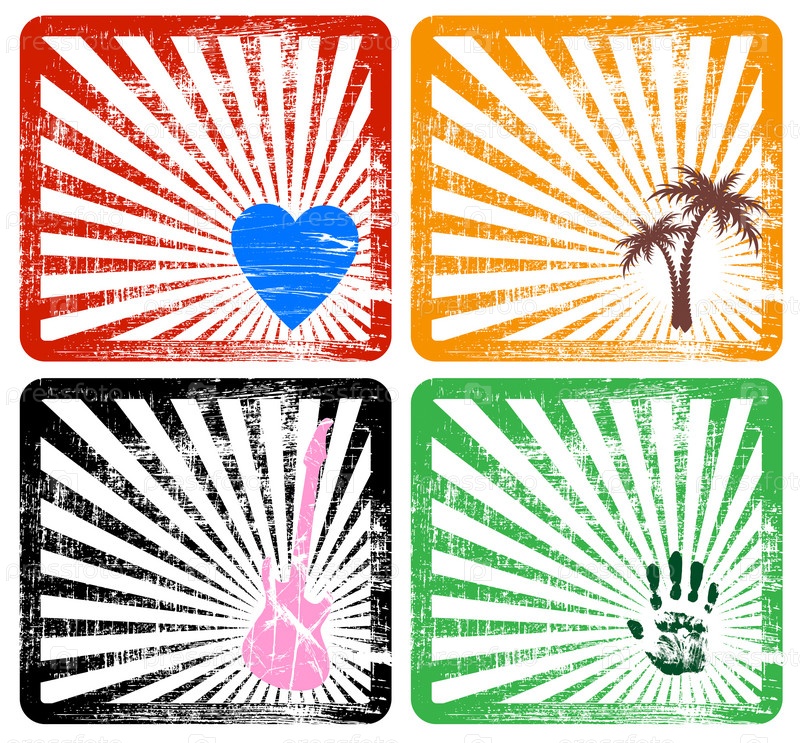 Четыре рамы с ладонью, гитарой, оттиском руки и сердцем