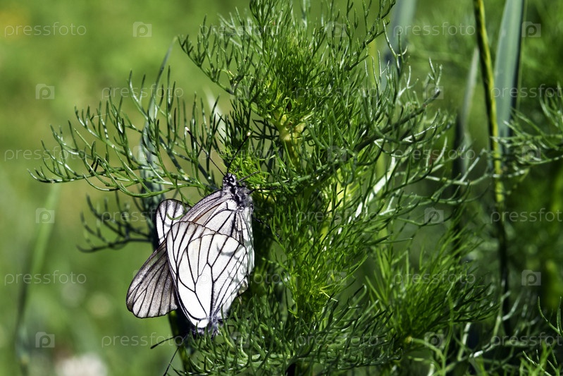 Две бабочки на зеленом растении
