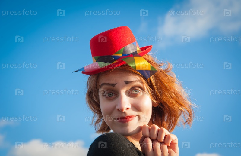 Красивая женщина в образе клоуна