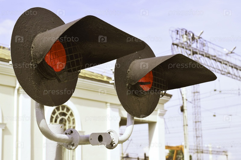 Железнодорожный светофор с красным сигналом