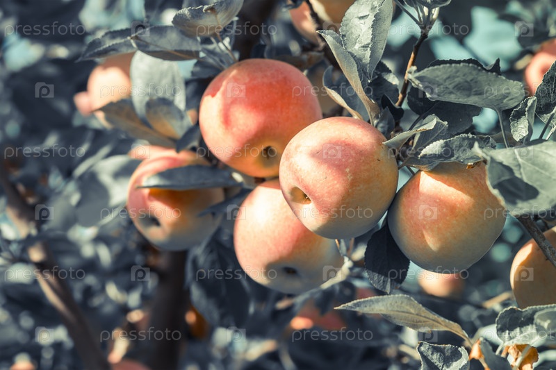 Спелые яблоки на ветке дерева