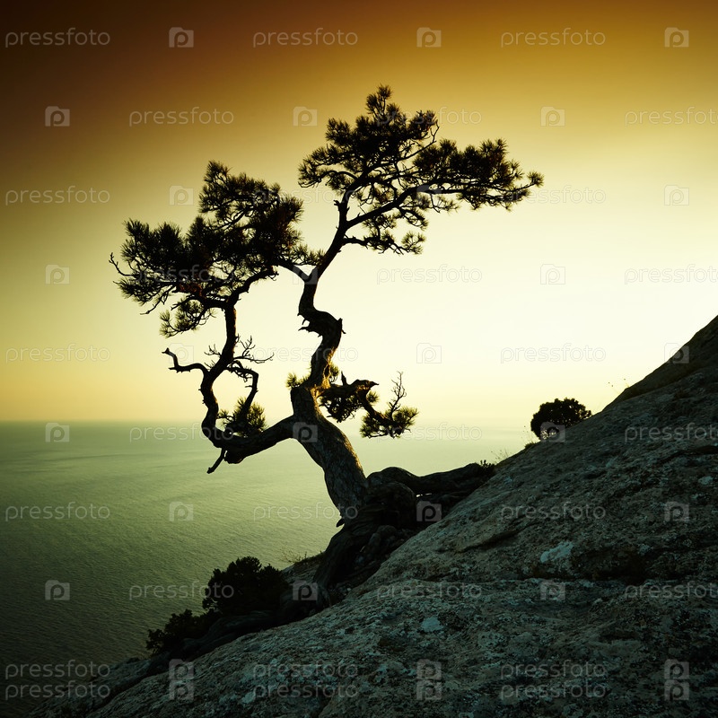 Дерево и море на закате. Крымский пейзаж