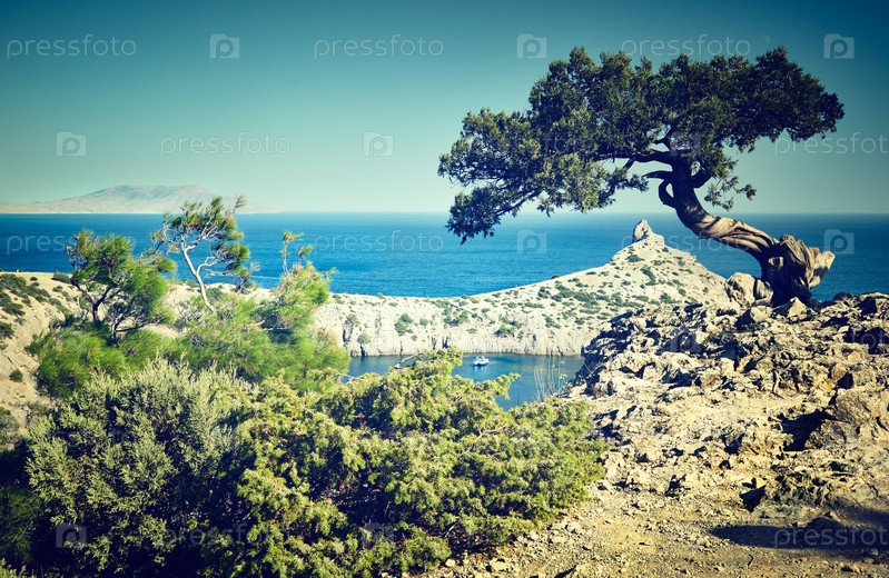 Дерево и море на закате. Крымский пейзаж