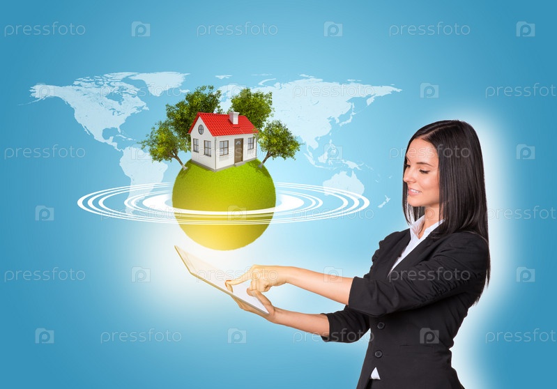 Женщина с планшетом и планетой Земля