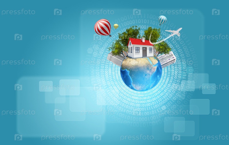 Земля с домами и деревьями