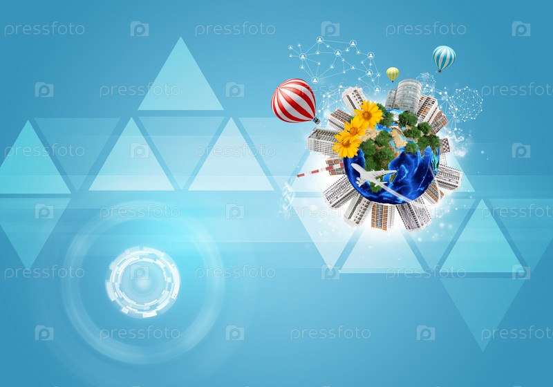 Земля с домами и деревьями