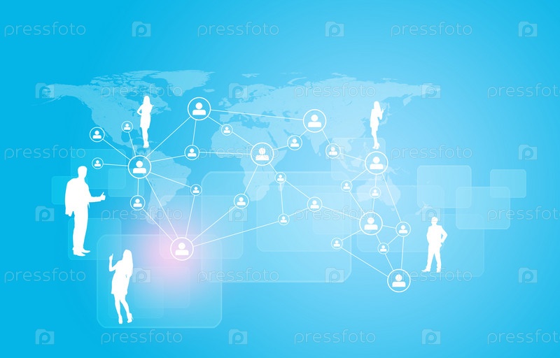 Силуэты людей и карта мира