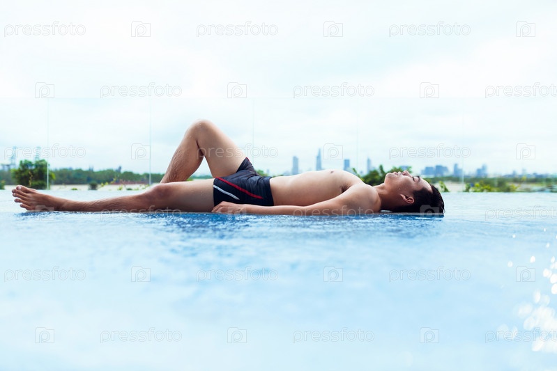 Мужчина отдыхает у бассейна