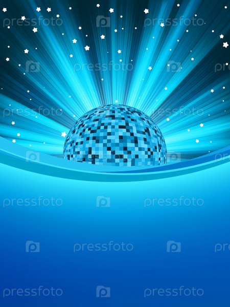 Абстрактный синий фон со сверкающим шаром и звездами