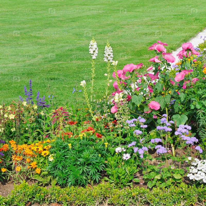 Клумба и зеленая трава