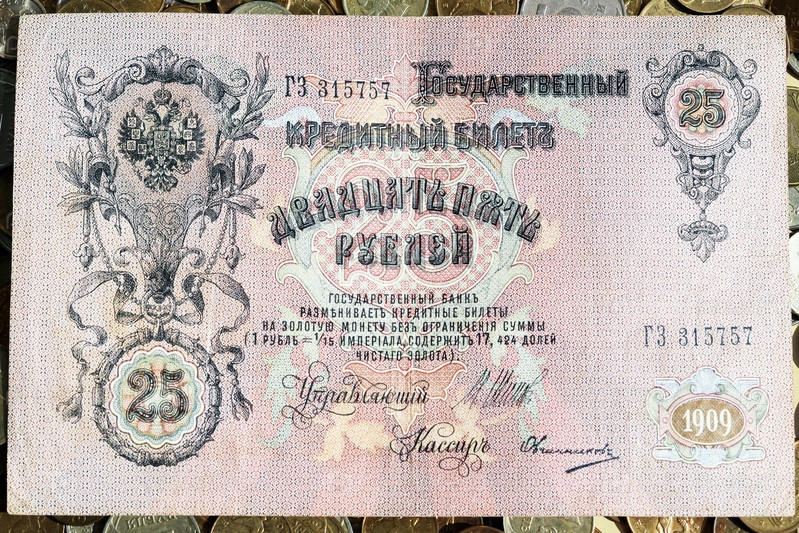 Бумажные деньги России. 25 рублей 1909 года
