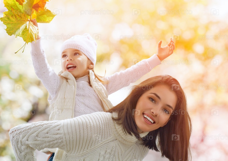 Мать с дочерью в осеннем парке
