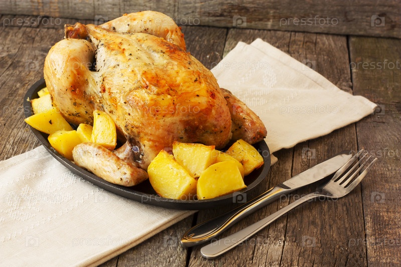 Курица с картофелем на сковороде