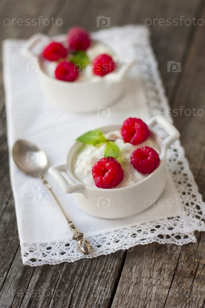 Десерт с творогом и малиной