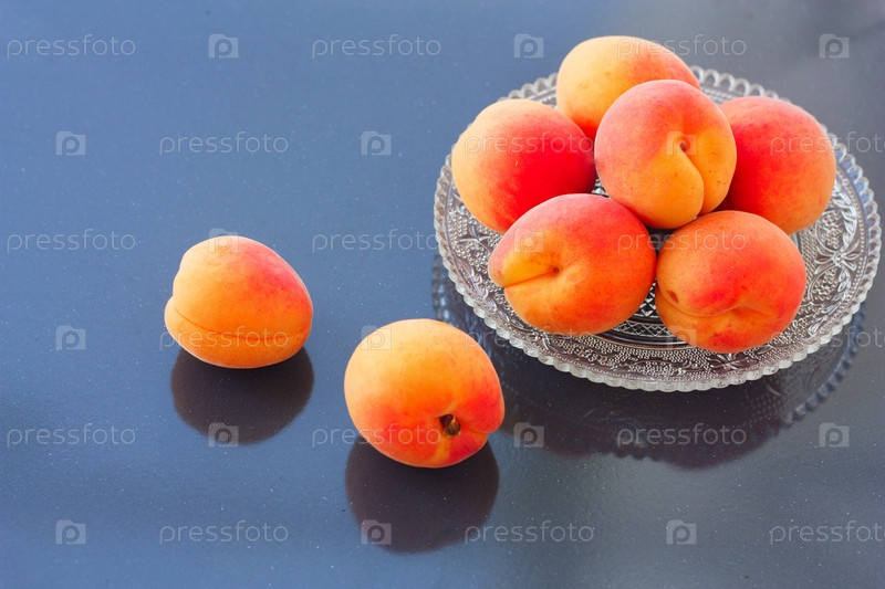 Свежие абрикосы на зеркальном фоне