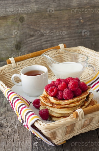 Блинчики с малиной и йогуртом