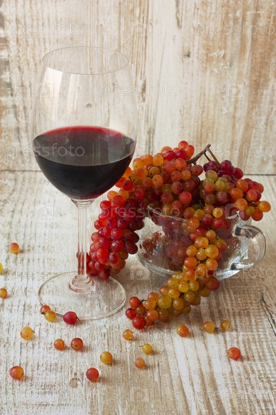 Стакан красного вина и виноград