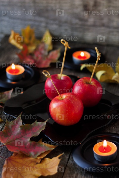 Яблоки, свечи и кленовые листья
