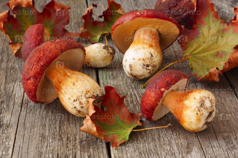 Белые грибы и кленовые листья