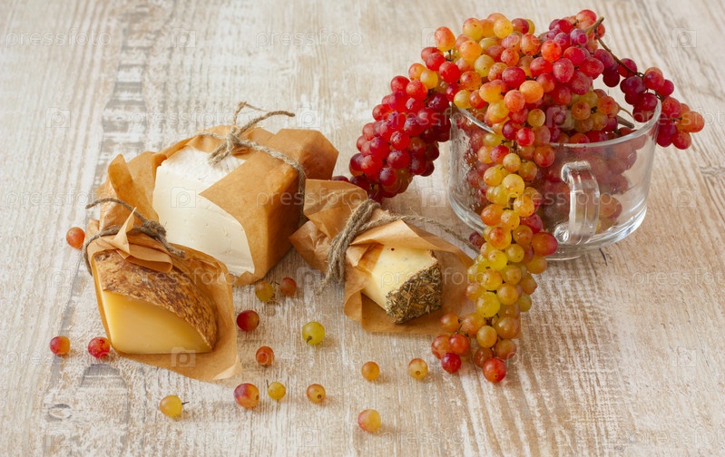 Сыр и свежий виноград