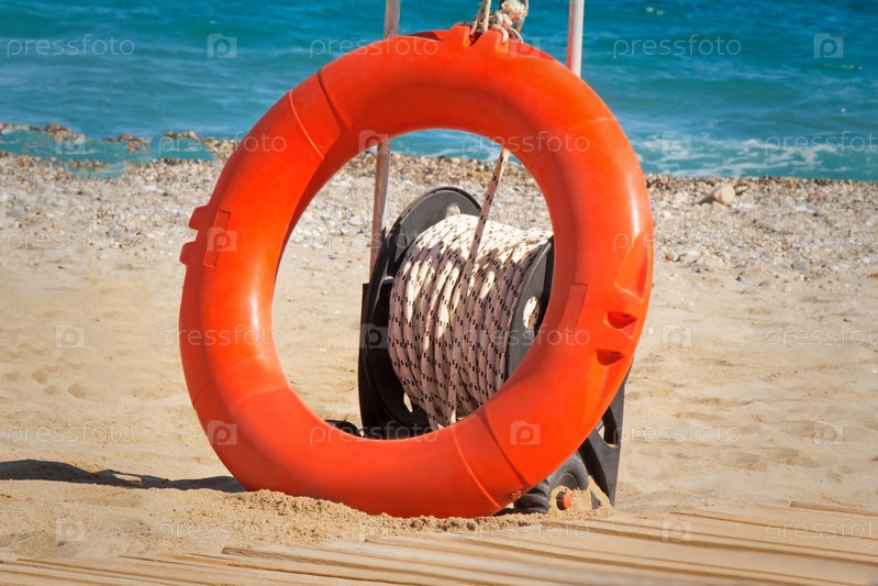 Спасательный круг на берегу моря