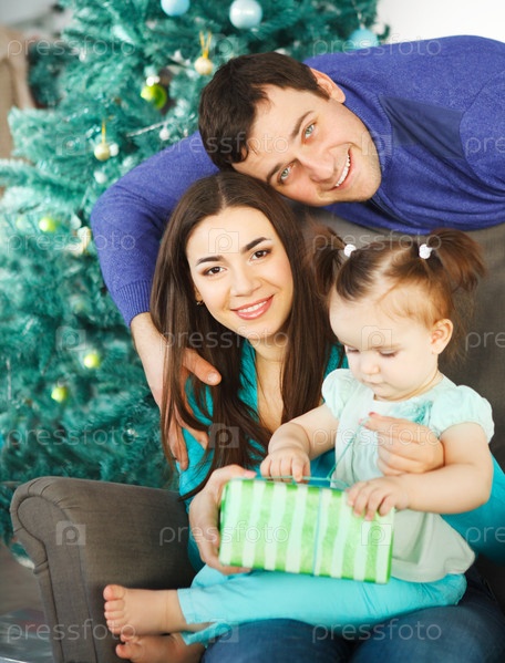 Семья возле елки