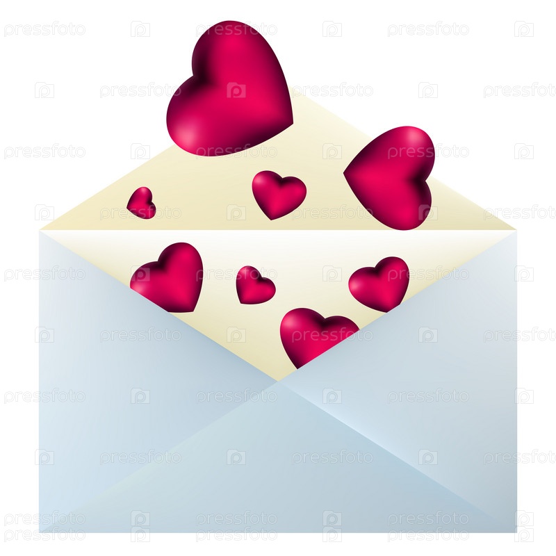Голубой конверт с сердцами