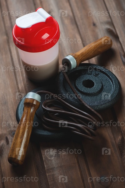 Гантель, скакалка и протеиновый коктейль