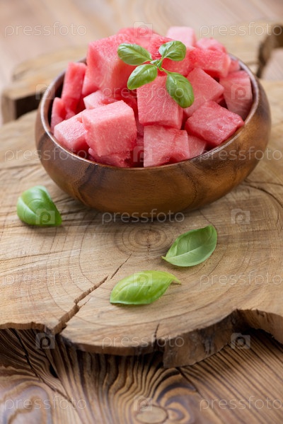 Кубики арбуза с базиликом