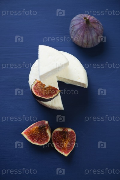 Сыр и инжир на синем фоне