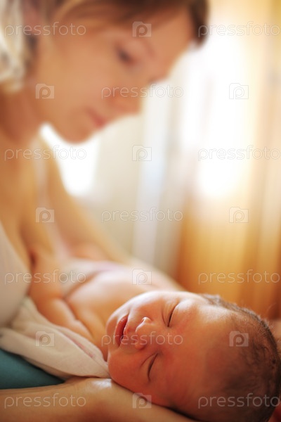 Мать со спящим новорожденным ребенком