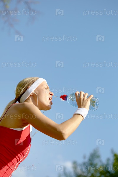 Спортивная девушка пьет воду
