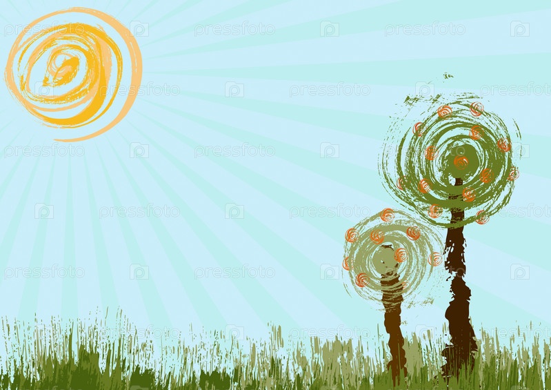 Два дерева, солнце, пространство для растений и копирования