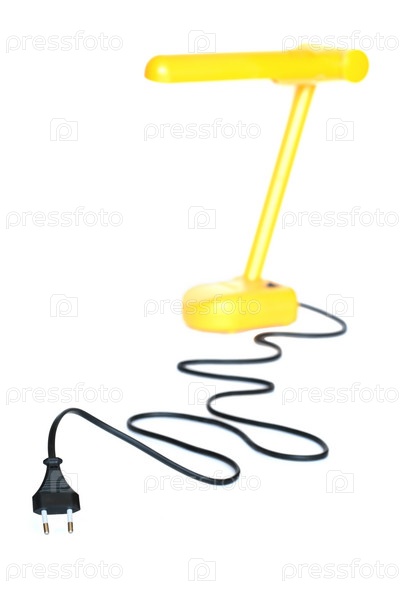 Желтая настольная лампа на белом фоне