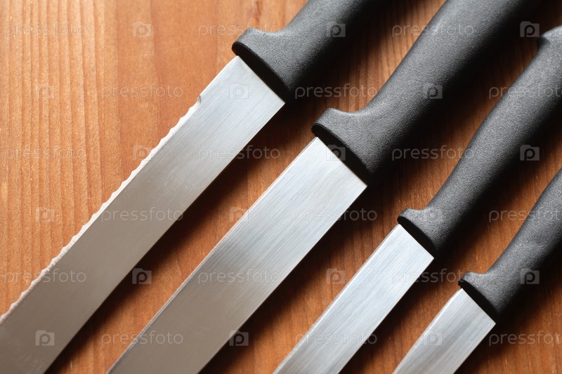 Кухонные ножи на деревянной поверхности